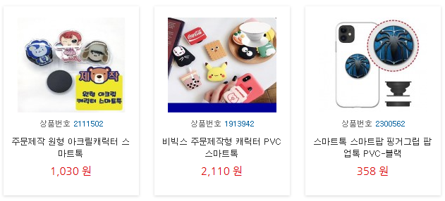 📌 스마트톡(폰 그립, 그립톡)도 꽤 다양하게 나뉘어요.